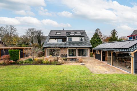 De achtertuin is in 2020 volledig opnieuw aangelegd en vormt een ware buitenoase. De verschillende niveaus zorgen voor speelsheid en structuur. Direct aan de woning grenst een royale overkapping, gerealiseerd in 2019, met vlondervloer en sfeervolle houten wandafwerking. De berging is bereikbaar via een aparte deur vanuit deze ruimte. Een paar treden lager ligt de lagergelegen tuin met tegels, kunstgras, sierbeplanting en mooie bomen. Helemaal achterin bevindt zich een verhoogd vlonderterras, perfect geschikt voor het plaatsen van een jacuzzi. Vanuit de tuin leidt een trap terug naar het terras op dijkniveau.